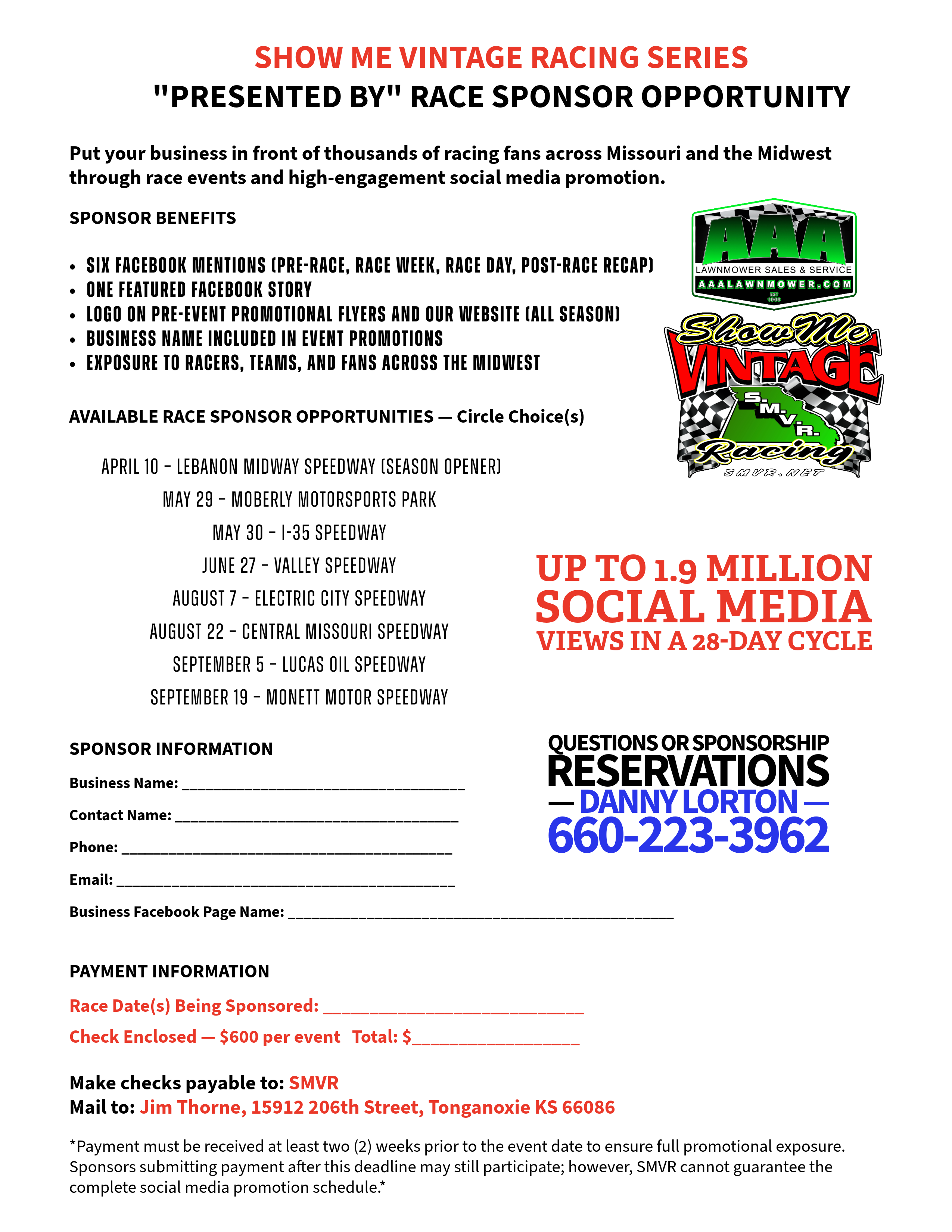 With a growing fan base across Missouri and the Midwest — and up to 1.9 MILLION social media views in a 28-day cycle — this is a powerful way to put your brand in front of racers, teams, and thousands of dirt track fans.